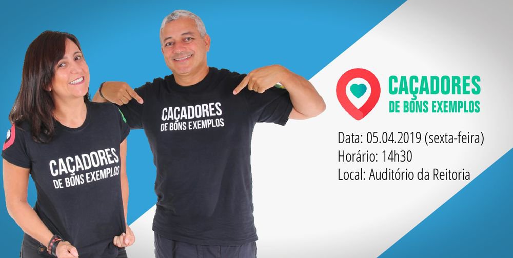 O que: Palestra com os “Caçadores de bons exemplos” || Quando: 05.04.2019 (sexta-feira) || Horário: 14h30 || Onde: Auditório da Reitoria"