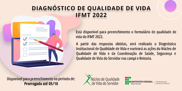 - Diagnóstico de Qualidade de Vida do IFMT 2022: questionário aberto até 22/09